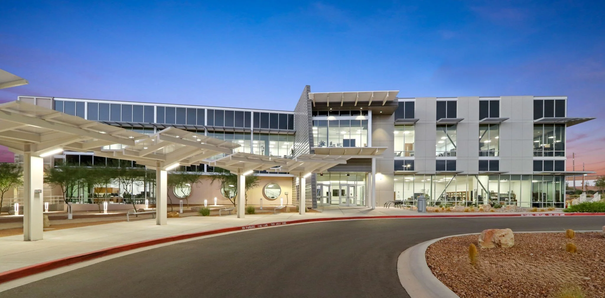 The 49,00SF, two-story new building, adjacent to the current District Office Headquarters, called for a Master Plan Design to link both buildings. The new site plan design includes a “Green Oasis” space with native vegetation, and a walkway covered with canopies creating a more cohesive, campus-like environment. The master plan provides a majestic entrance to the complex ending in a roundabout with a drop-off area. The state-of-the-art Technology Building contains 2 learning centers with telescoping stage seating, and a flexitorium open space with folding partitions to allow the combination of these spaces into a large meeting room; 3 computer labs, also with folding partitions; a training library which doubles as a rest area for the staff of both buildings; 3 conference rooms/Board rooms, a kitchen/lounge with large fenestration viewing the green areas. The building floor plan design follows the WIFI symbol with the green space at the center of the space. The building design includes plenty of collaboration spaces promoting teamwork and synergies. The envelope’s main façade features efficient glazing systems and curtain wall protected by custom solar shading devices.